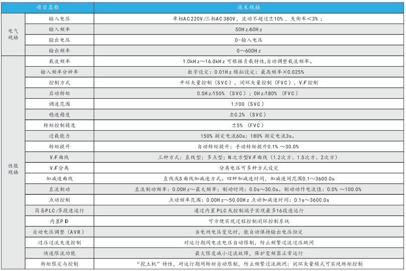 TVF15系列變頻器適用于三相異步電機的速度與轉矩控制,具有優異的動態性能和強大的過載能力,采用模塊化的高功率密度設計,可在較惡劣的工況下長時間可靠工作,滿足多種應用場合,可用于傳送、機床、風機、水泵、紡織等各種電機驅動場合。