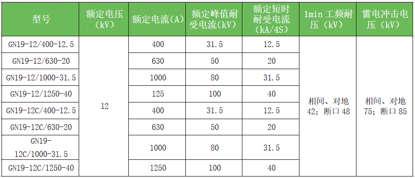 GN19-12(C) 戶內高壓隔離開關適用于交流50Hz、額定電壓12kV 及以下額定電流小于1250A電力系統中, 作為在有電壓而無負載情況下分、合電路之用。隔離開關可配用CS6-1 型手動操作機構, 可加裝帶電顯示裝置等。執行標準:GB/T 1985《高壓交流隔離開關和接地開關》GB/T 11022《高壓開關設備和控制設備標準的共用技術要求》