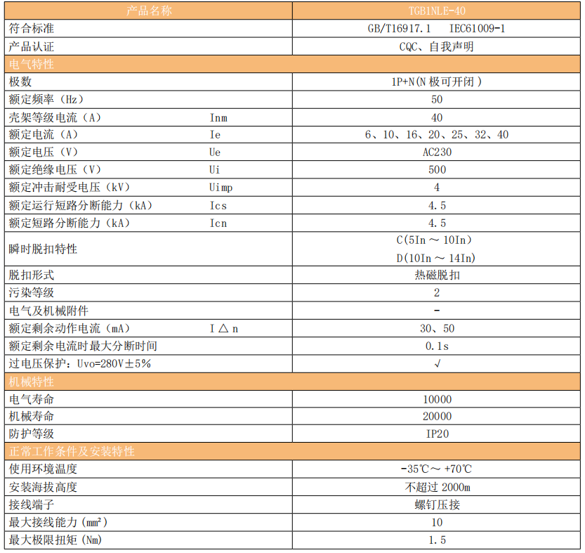 TGB1NLE-40系列剩余電流動(dòng)作斷路器(以下簡稱漏電斷路器)主要適用于交流 50Hz,額定工作電壓 230V,額定電流至 40A的線路中,當(dāng)人身觸電或電網(wǎng)泄露電流超過規(guī)定值時(shí),剩余電流動(dòng)作斷路器能在極短的時(shí)間內(nèi)迅速切斷電源,保護(hù)人身及用電設(shè)備的安全,并且有過載、短路、過壓(TGB1NLG-40)及在正常情況下作為線路的不頻繁轉(zhuǎn)換之用,尤其適用于工業(yè)和商業(yè)的照明配電系統(tǒng)。.
