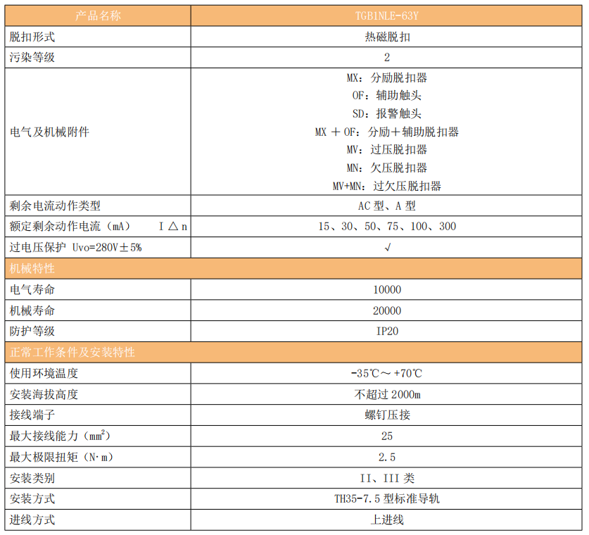 TGB1NLE-63Y 系列剩余電流動作斷路器(以下簡稱漏電斷路器)主要適用于交流 50Hz,額定工作電壓 230V/400V,額定電流至 63A的線路中,當人身觸電或電網泄露電流超過規定值時。剩余電流動作斷路器能在極短的時間內迅速切斷電源,保護人身及用電設備的安全,并且有過載、短路、過壓及在正常情況下作為線路的不頻繁轉換之用,尤其適用于工業和商業的照明配電系統。
