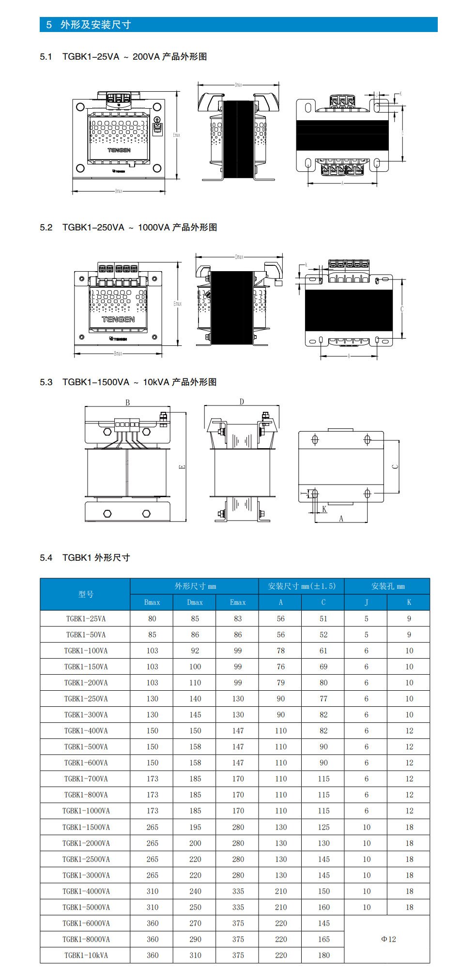 TGBK1 型系列控制變壓器(以下簡稱變壓器),適用于交流50/60Hz,額定電源電壓不超過660V(660V 以上電壓可協商定制)的交流電路中,作為機床和機械設備中的控制電源,工作照明、電子設備及信號燈電源;也可作為小型動力電源使用。